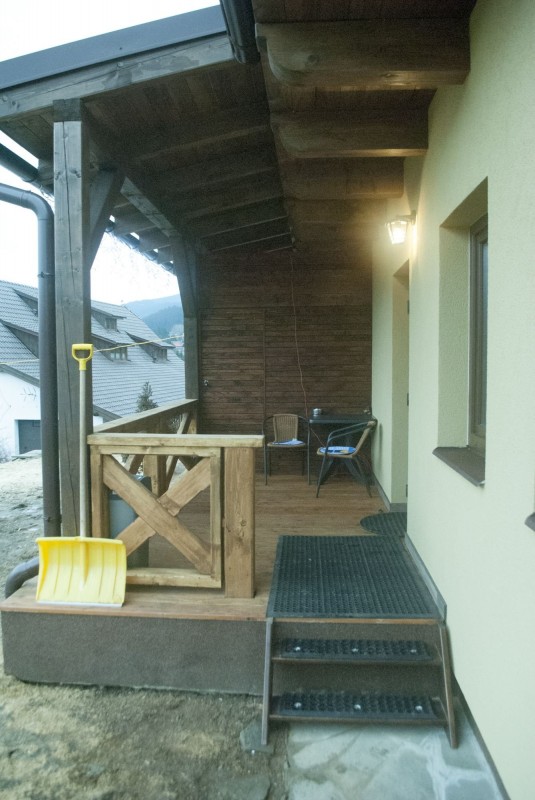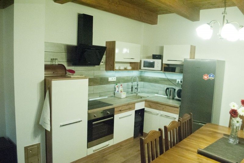 Chalupa je rozdělena na dva oddělené apartmány se samostanými vchody.