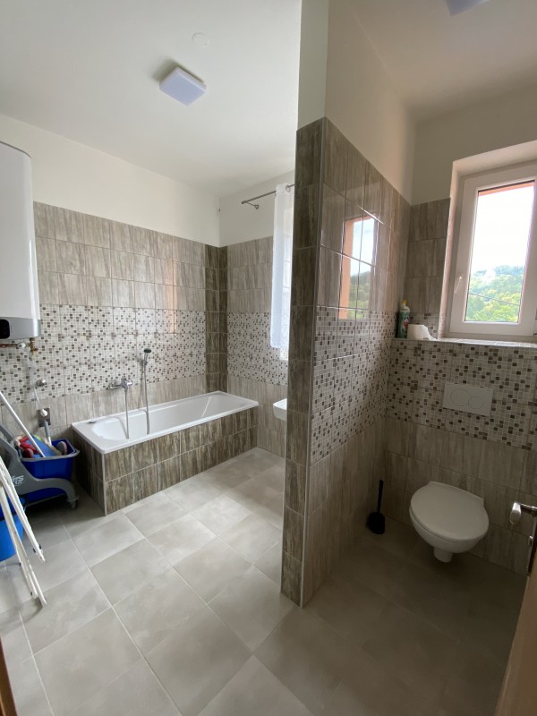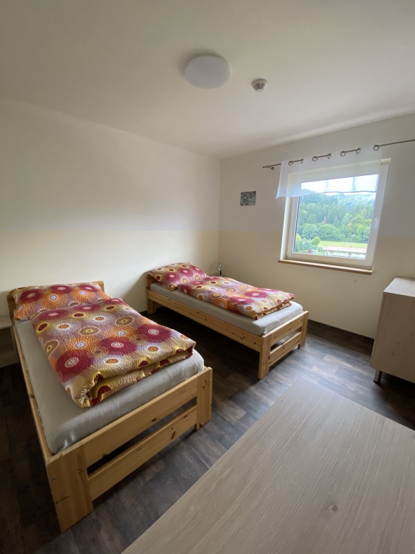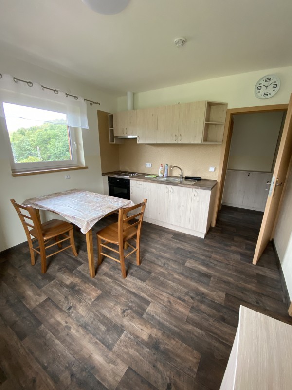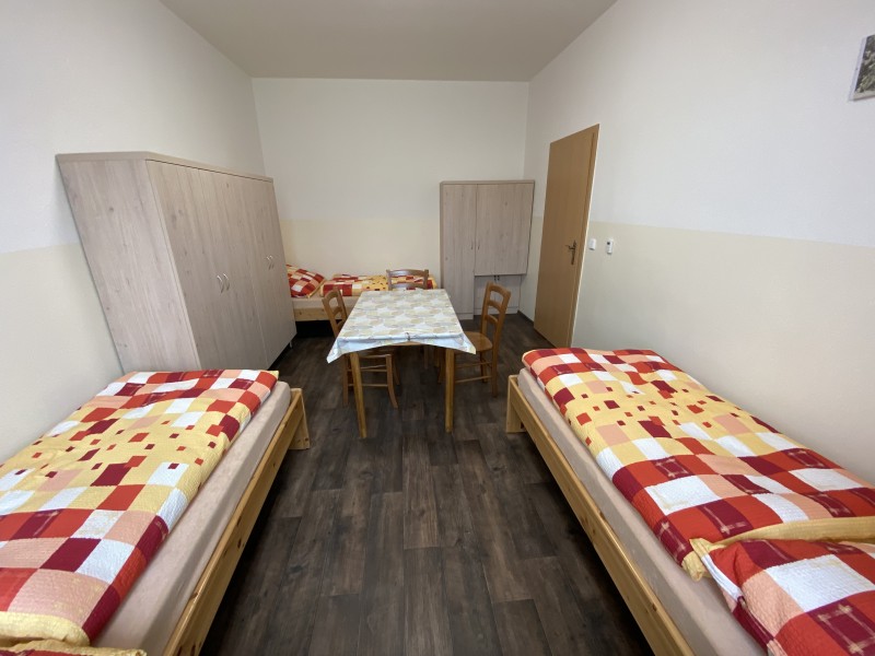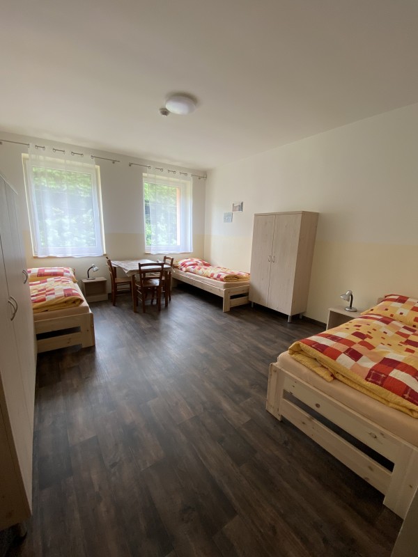 Bytový dům má 3 podlaží. 1 podlaží: 1 byt 2 pokoje po 3 lůžkách, kuchyň + koupelna a WC. 2 podlaží 1 byt 3 pokoje po 3 lůžkách, kuchyň + koupelna a WC. 3 podlaží 1 byt 1 pokoj 2 lůžka kuchyň + koupelna a WC.2 byt 1 pokoj 3 lůžka a pokoj s kuch. koutem 2 lůžka