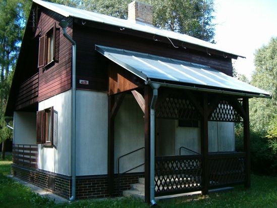 Zádvěří. Obytná místnost je vybavena jídelním a kuchyňským koutem, krbem a TV; vstup na malou terasu. V kuchyňském koutě je k dispozici el. vařič (2 plotýnky), lednička, mikrovlnná trouba, a el. konvice. Dále jídelní servis, skleničky a hrnky pro 7 osob. Koupelna se sprchovým koutem, WC a teplou i studenou vodou. V patře se nacházejí 2 ložnice: 1/ se 4 lůžky, ve které jsou dvě patrové postele nad sebou; 2/ se 3 lůžky, s jednou patrovou postelí nad sebou. Na pozemku je k dispozici venkovní posezení a ohniště. Chatka je vybavená topením a provozována celoročně. V suterénu je navíc vetší místnost vhodná pro posezení. Povlečení je v ceně. Ručníky, utěrky a prostředky na nádobí je nutno vzít sebou.