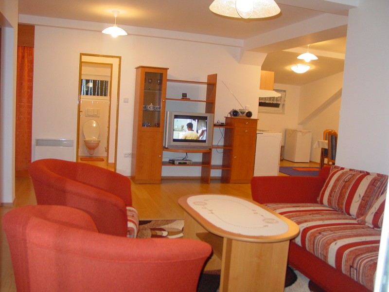 cena za celý AP činí 1.300 Kč / noc; kapacita 4 lůžka – mimořádně přistýlka; v apartmánu je k dispozici plně vybavená kuchyně s elektrickým sporákem, nádobím, lednicí, mikrovlnkou -můžete si zde pohodlně připravit snídani …, je zde instalováno domácí kino; Váš PC možno připojit přes PC zásuvku k internetu ( jednorázový poplatek 100 Kč ), domácí obuv žádoucí; při obsazení apartmánu dvěma osobami dohoda o ceně možná.