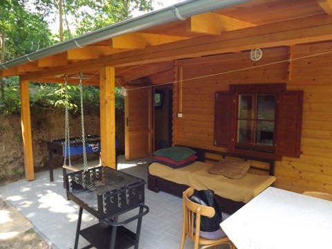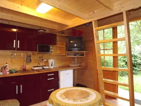 Chatečka je plně a nadstandartně zařízená kuchyňskou linkou s pitnou vodou vč. nádobí, lednice s mrazáčkem, dvojvařiče, mikrovlnky a varné konvice, bar. TV, skříň, sedačka, stoleček, postel a spací patro pro 4 osoby. Místnost se sprchovým koutem a splachovacím WC je umístěna zvlášť ze zadní strany. Před chatečkou je venkovní stolek s židličkami. V těsné blízkosti chatečky je soukromé volejbalové hřiště, které je Vám stejně jako loďka u vody volně k dispozici společně s ubytovanými ve velké chatě. Parkovat můžete volně u silnice asi 30 metrů od chatečky.
